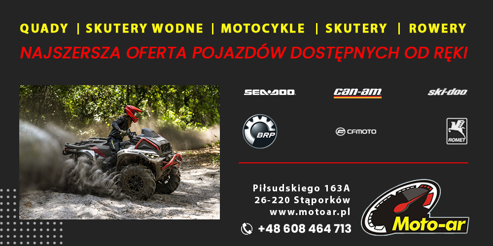 Firma MOTO-AR została założona w styczniu 1994 roku. Profesjonalne kształcenie oraz kilkunastoletnie doświadczenie pozwala nam na  fachową obsługę i doradztwo w naprawie motocykli, quadów oraz skuterów. Jako autoryzowany dealer MOTO-AR, oferujemy produkty marki BRP: CAN–AM, SPYDER, SEA–DOO, SKI-DOO, LYNX i EVINRUDE, takie jak: akcesoria, łodzie, odzież, osprzęt, pojazdy ATV, silniki, skutery wodne, skutery śnieżne. Wychodząc naprzeciw oczekiwaniom naszych klientów rokrocznie powiększamy swoją ofertę wprowadzającnowe marki, takie jak np. Linhai, CF Moto i inne.  Do sprzedawanych pojazdów oferujemy serwis gwarancyjny i pogwarancyjny oraz części i akcesoria.